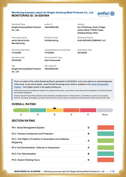 Thanks to high-quality products and services, the company has won a good reputation in the market. In the future, Ningbo Kecheng Metal Products Co., Ltd. will continue to adhere to professional and innovative concepts, constantly improve the quality of products and service levels, and provide customers with better products.