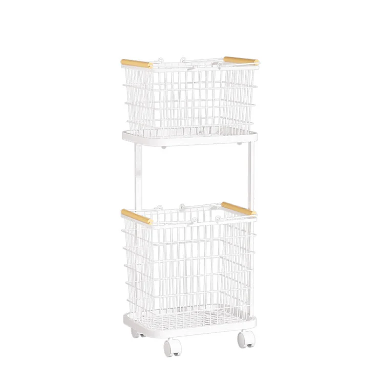 Clothing organizing gadget: This Bathroom Storage Iron Laundry Basket with Casters can categorize and place laundry to be washed and laundry to be dried separately. The upper layer of the dirty laundry basket holds laundry to be washed, and the lower layer holds laundry to be dried. This makes the organization more efficient.