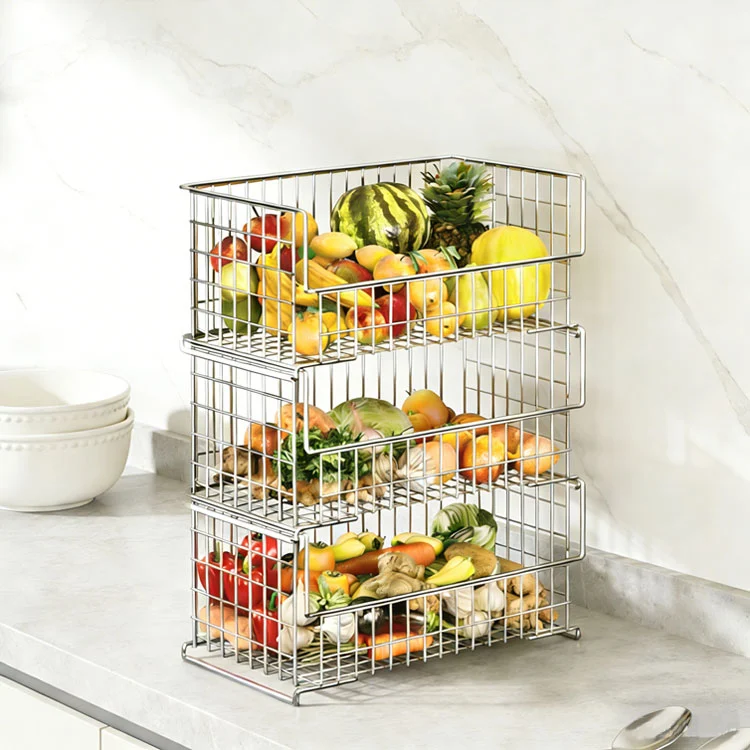 Size advantages: The size of a single basket is suitable for most cabinet depths, and the height is controllable after stacking. Even in a small kitchen, it can be easily accommodated.